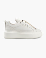 Der weisse Cruyff Palco Soft Leather Damenschuh. Ein eleganter Sneaker im minimalistischen Design aus weichem Leder, der dem Schuh eine edle und zeitlose Optik verleiht. Die leichte, hohe Sohle sorgt fur einen bequemen, laessigen Look, der sich perfekt fur den Alltag eignet. Das Markenlogo findet sich auf der Zunge, der Innensohle und der Seitenwand, abgerundet wird der Schuh durch ein goldenes Cruyff-Schriftzug-Logo an der Aussenseite.
