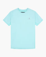 Das Cruyff Colina T-Shirt in Aquamarin fur Herren. Ein modernes T-Shirt, das Komfort und Funktionalitaet mit einer markanten Silhouette vereint. Gefertigt aus 88 % Polyamid und 12 % Elastan, besticht dieses T-Shirt durch Schulterfalten, ein bedrucktes Nackenlabel und eine geschwungene, genaehte Verarbeitung. Das Cruyff-Logo befindet sich auf der linken Brust.