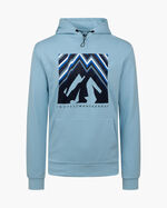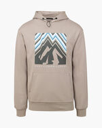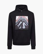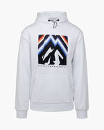 Cruyff Montserrat Peak Hoodie in White. Elevate your downtime with the Montserrat peaks. This regular-fit hoodie with dropped shoulders features a large graphic print on the chest, and small text prints on the back and hood. The hood is adjustable through a bungee cord. Made from 95% cotton, 5% elastane.