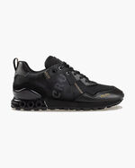 The Cruyff Superbia Hex-Tech in Black and Gold for men. Built with a reflective ripstop upper, titanium mesh toepanel, and molded carbon-style spoiler, this sneaker radiates confidence and innovation. A built-in INFINITY unit inside the shock-absorbing EVA midsole offers a next-level ride, finished with reflective branding and bold webbing.