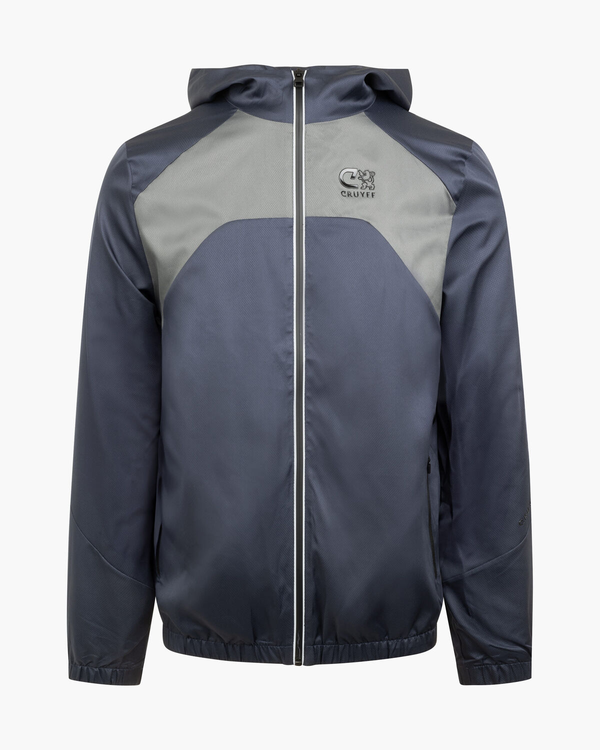 Cambio Woven Tracktop in Navy by Cruyff is crafted from 100% polyester and features a relaxed fit for ultimate comfort. This versatile piece includes a reflective transfer print on the zip tape, a raised gel print logo, and a coated zip for a sleek finish. The mesh lining adds breathability, making it perfect for both active days and casual outings.