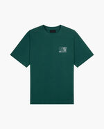 The Cruyff Spirit T-shirt in Evergreen for men. A contemporary T-shirt with an oversized fit and striking graphic details for a confident everyday look. Made of 95% cotton and 5% elastane, this T-shirt features a hexagonal neckband at the back for added comfort and structure. The Cruyff logo is screen-printed on the left chest and center back.