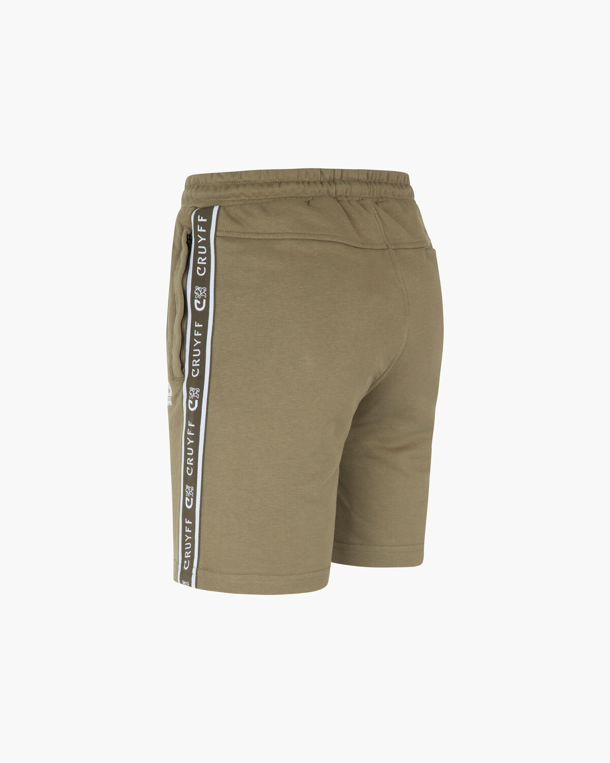 Cruyff Sports Xicota Shorts in army green. A comfortable jogging short with branding tape on the side of both legs. The shorts feature zip-in pockets, rib at the sleeve ends for elasticity and a drawstring through the waistband. Made from a blend of cotton and polyester for maximum comfort and durability. Composition: 70% cotton / 30% polyester