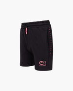 El pantalón corto Booster de Cruyff para niño en azul marino. Este pantalón corto hecho de un suave tejido french terry (felpa francesa) cuenta con dos bolsillos laterales, una cinta con la palabra Cruyff a los lados, cordones con ribetes amarillos y el logo de C-Lion.