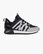 La Cruyff Fearia, una zapatilla deportiva para hombre en negro y gris. La parte superior de este modelo en negro está hecha de malla técnica, partes mates, ante y un discreto patrón de lagarto en el talón. La característica más destacable de estas runners son las cintas tejidas reflectantes cubriendo gran parte del lateral de la zapatilla. Acabada con la marca Cruyff dorada en la lengüeta. Colocada sobre una entresuela de EVA con un estabilizador de talón INFINITY y una suela inspirada en el fútbol con tacos hexagonales.