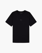 The Cruyff Pace T-shirt in black for men. A modern T-shirt with a relaxed fit and clean details for everyday versatility. Made of 95% cotton and 5% elastane, this T-shirt features a left back seam and a tonal, glossy print at the center back. The stretchy cotton blend ensures comfort while maintaining a high-quality look.