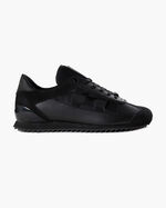 Cruyff Montanya in Black Teknit. This premium low profile sneaker is a contemporary reinterpretation of classic football boots. Combining suede, teknit, and diamond embossed panels, this sneaker creates a sleek and technical appearance that elevates your sports-lifestyle wardrobe.