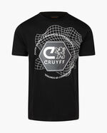 The Cruyff Aiden Tee in Black is a regular-fit T-shirt with a chaos-theory ripstop print on the chest, featuring the full Cruyff logo in the icon hexagon. Made from 95% cotton, and 5% elastane.