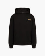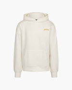 De Cruyff Titi Hoodie in creme en goud voor heren. Hoodie van 80% katoen en 20% polyester met tonale koorden, goudkleurige Cruyff-print op de borst, ribboorden, buidelzak en contrasterende afwerking bij de capuchon. Zeshoekige buggy op de rug. Regular fit.