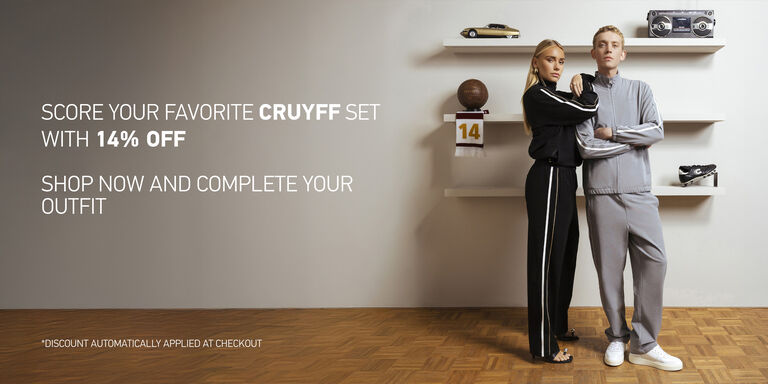Cruyff sets are so comfortable that you will never want to take them off. A Cruyff sets for junior’ with rich details is meant to feel good in, as much as to be seen in. Combine a Cruyff top with a matching pants or shorts to mix it up. Cruyff sets are available in your favourite colours, such as black, white, and navy.