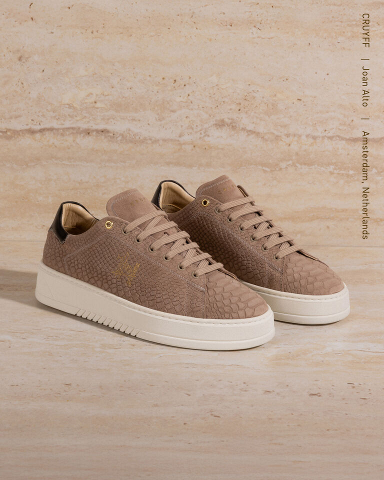 The Cruyff Joan is a premium sneaker, handmade in Portugal from rich materials. Finished with a golden signature and Cruyff branding on the side and heel to create your smart look.